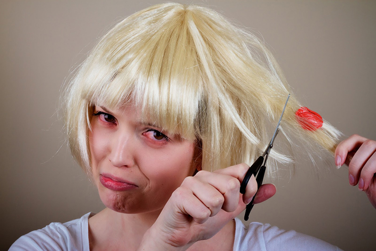 Từ nay bạn đừng nghĩ đến chuyện cắt tóc khi bị dính bã kẹo cao su nữa nhé.