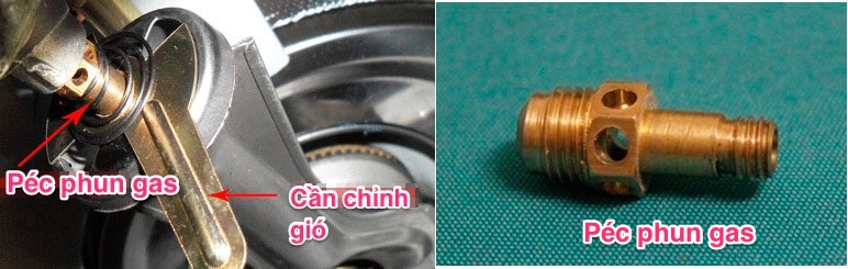 Cách khắc phục: Bạn phải tháo bỏ kiềng bếp, đầu đốt, rồi dùng vít tháo cụm ống điếu và cần chỉnh gió bên dưới đầu đốt ra và lấy péc phun gas (kim phun gas) ra.
