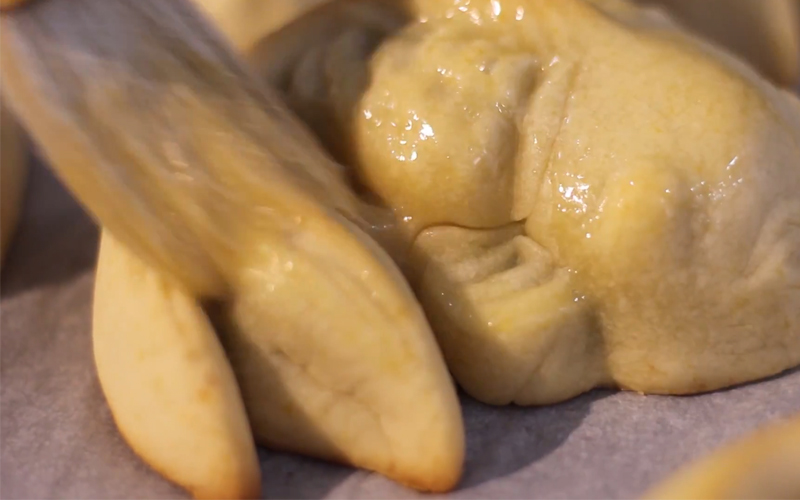 Bạn chú ý sao cho bột bao kín nhân, không có không khí bên trong và không có vết nứt.