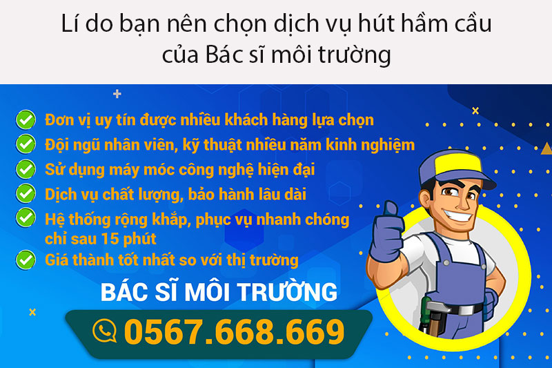 Với những thông tin trên đây, chắc chắn người đọc đã tìm được câu trả lời cho câu hỏi: hút hầm cầu bao nhiêu 1 khối? Để lựa chọn dịch vụ chuyên nghiệp, hiệu quả thì ngoài yếu tố giá cả, quý khách hàng nên quan tâm thêm các yếu tố về chế độ bảo hành, cam kết chất lượng. Và với Bác sĩ Môi trường sẽ đem lại sự yên tâm tuyệt đối về các yếu tố trên. Chúng tôi hân hạnh phục vụ quý khách.